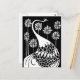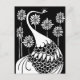 This whimsical image is adapted from illustrations done by famous artist Aubrey Beardsley for a special edition of Malory's "Morte D'Arthur", circa 1892. This postcard shows a fat Peacock in a flower garden. In its original black and white.