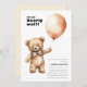 A baby shower "we can bearly wait" invitation featuring a teddy bear holding a balloon for a boy or girl . Matching items available in the bearly wait Teddy Bear Baby Shower collection.