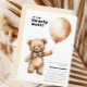 A baby shower "we can bearly wait" invitation featuring a teddy bear holding a balloon for a boy or girl . Matching items available in the bearly wait Teddy Bear Baby Shower collection.