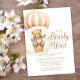 Bearly Wait Girl Teddy Bear Baby Shower Invitation features an adorable watercolor illustration of a teddy bear in a hot air balloon against soft clouds.