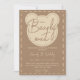 Minimalist, modern, cute brown and beige gender-neutral baby shower invite with elegant script and a cute teddy bear graphic.