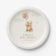 Baby shower paper plates featuring a cute bear holding balloons, a butterfly and clouds. The whimsical and adorable design will have everyone excited to celebrate with you!