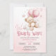 We Can Bearly Wait Teddy Bear Pink Balloons Baby Shower Invitation