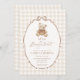 This sweet gingham baby shower invitation features a cuddly brown teddy bear and soft neutral tones—perfect for a bearly wait theme. Explore the full collection for coordinating signs, games, and party supplies!