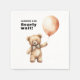 We can bearly wait baby shower paper napkins , featuring a teddy holding a balloon all on a white background , a modern minimalistic design with beautiful detail to the graphics , painted in watercolor paint. ideal for a modern gender neutral baby shower.