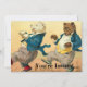 Two bears wearing clothing dance across the floor. Below "You're invited" On the back are customisable places for you to add the details of your party
