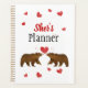 Here's a cute planner that will take you happily through the year! The Bears & Hearts Planner features two bears facing each other, with a red heart in between them. The design also includes scattered red hearts. The text can be customised as desired.