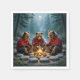 A charming scene of three bears in cosy plaid flannel shirts roasting marshmallows around a crackling campfire by a river under the soft glow of a moonlit forest.