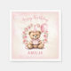 1st Birthday Paper Napkins with a cute teddy bear girl, balloons, cupcake, big number and pink roses. Cute design for beary first or any Birthday of a little girl in pink and beige. Easily personalise the text. Please visit the store for the full line of products that are available :) - Kate Eden Art