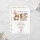A sweet teddy bear-themed invitation featuring soft watercolor illustrations and your baby’s photo inside the word “ONE.” This gentle layout with beige, pink and brown tones is perfect for baby girl celebrations. Great for a first birthday party with a soft woodland, beary cute theme. Add your event details and photo with ease. Works beautifully printed or as a digital send-out.