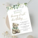 Cute beary 1st birthday boho watercolor teddy bear green leaves invitation.