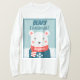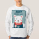Fun Christmas long sleeves t-shirt featuring a cute cartoon white bear on a snowy background, with a blue sweater and red scarf.