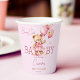 Beary cute girl teddy bear baby shower tableware template personalised party cups, cute fluffy girl teddy bear with a pink dress and a pink bow pink balloons baby shower template party cups, teddy bear themed girls baby shower cups
