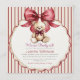 Celebrate the arrival of your little one with this adorable "We Can Bearly Wait!" baby shower invitation. Featuring a charming watercolor teddy bear illustration with a sweet bow, set against a classic red and white striped background with a decorative scalloped border. This design is perfect for honoring the mom-to-be and sharing the joyous news of your upcoming celebration. It perfectly captures a warm and loving atmosphere, making it a memorable keepsake for guests.