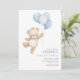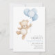 Beary First Blue Balloon Boy 1st Birthday Teddy Invitation