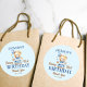 Beary first boys birthday party favour thank you stickers, watercolor cute teddy bear dressed up in pant and a bow tie holding a blue balloon party favour stickers blue brown and white.