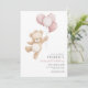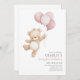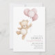 Beary First Pink Balloon Girls 1st Birthday Teddy Invitation
