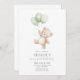 Beary First Sage Green Balloon Boy 1st Birthday Invitation