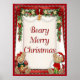 Pretty Victorian style design with two Teddy Bears in their Christmas outfits.The image has swagged drapes and garland with a generous assortment of Poinsettia and ornaments. Pretty red bows and bells accent the evergreen garland.