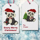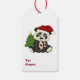 This adorable Christmas gift tag features a cute cartoon panda bear dressed in a red Santa hat and nibbling on a red and white striped candy cane. Below the image is the red customisable text Beary Merry Christmas. The image and text are placed on a white background. The back of the tag has another image of the same bear, with a green holiday tree behind him. You may fill in the custom field for the To and From information, if you'd like, or leave it blank to write by hand. Especially appealing to kids! *Thanks to Real Deal Clipart for the clipart used to create this design. http://realdealclipart.com * This gift tag matches the Panda Bear Candy Cane gift wrap in our store.