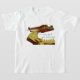 The t-shirt feels and looks great quality, a good thick cotton. It will be a little big for my son, but that means he will be able to wear it and not out grow it too soon. The print was as described on the order when personalised. True size, shape and colour T-shirt- thanks.