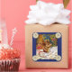 A cute illustration from a vintage children's book depicting a mother mouse mending/ sewing a quilt as her baby mice watch on. Button and stitch embellishments add a cute touch.