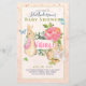 Super cute vintage-style illustrated Rabbit with a pink waistcoat surrounded by nature, garden, and elements. Adorable Baby shower, girl's gender reveal party invitations or announcement.
