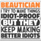 Funny Beautician Sayings "Beautician I Try To Make Things Idiot Proof But They Keep Making Better Idiots". Grab this Funny Beautician design as a funny gifts for an awesome mum, dad or friend.