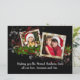 Elegant and beautiful Christmas design featuring two gold frames for photos along with a short note to family and friends son the back.