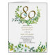 This beautifully elegant birthday invitation featuring green leaves and foliage and white with a hint of blue flowers is perfect for an 80th birthday party celebration for mother or father, grandparents, colleague or other. Simply edit the text to suit your exact needs. It has modern handwritten and calligraphy style fonts in gold and black.