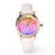 An elegant rose gold watch with a beautiful pink, red and blue liquified abstract design. This pretty watch comes with an elegant white leather wristband. The watch face has a text message and 4 photos. Text and photos are customisable, and can be easily personalised to fit your needs. This unique and beautiful watch is the best gift for your wife, girlfriend and mum. Great gift for birthday, wedding, anniversary, holiday, Valentine’s Day, Mother’s Day , and for yourself!