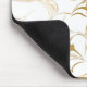 Nice soft old "style" mouse pad with rubber underneath. The patter is lovely and matches the "theme" of white and gold in our home office. It does look more dark orange than gold. But still okay.