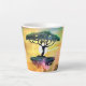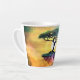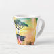 This unique designed latte mug has the beautiful African Acacia Tree on a floating rock. The background has a bright sunset with a galaxy of bright colours of yellow, orange, blue, greens and pinks.