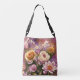 This crossbody bag features a beautiful flower pattern image in soft colours. The image is an artistic, acrylic painting.