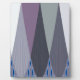 The image showcases three elongated, pointed shapes resembling chevrons or arrows, arranged vertically. The central shape, in a vibrant teal/cyan, is flanked by two outer shapes that blend blue and purple tones. This symmetrical arrangement draws the viewer's eye, emphasizing the height and pointedness of the design against a solid teal/cyan background.