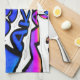 White: Serves as the background and for some details in the abstract patterns, providing a clean and neutral backdrop that allows the colours to pop.