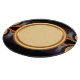 Golden browns, creams and orange with a touch of violet and green vibrate through fractal swirl design on a black background created from a beautiful sunset photo. The rich earthtones highlight a cream and orange centre circle on this round cutting board that will add a natural touch of warmth and style when serving from you board.