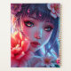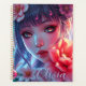 Anime personalised planner. A beautiful girl with pink eyes, flowers and musical notes glitchcore art. Purple and pink floral accents.