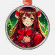 Beautiful Anime Girl in Red Christmas Metal Tree Decoration