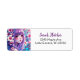 Pretty anime girl with purple hair and white flowers hyper realistic ai art return address labels.