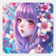 Beautiful Anime Girl with Purple Hair Square Sticker