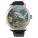 This is a Very Beautiful Antique Steam Engine Locomotive Travelling Through the Mountains Wrist Watch, Digital Painting