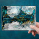 Stunning teal Apatite gemstone crystal geode accented with sparkling marbled gold nugget veining and quartz crystal - coordinating reverse.