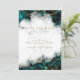 Wedding Save the Date - Stunning teal Apatite gemstone crystal geode accented with sparkling marbled gold nugget veining and quartz crystal - coordinating reverse.
