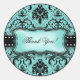 Beautiful Aqua Blue and Black Damask Thank You Classic Round Sticker