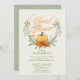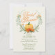 Modern Fall Wreath Bridal Shower Invitation featuring beautiful green fall leaf wreath with a pumpkin & dainty flowers with modern typography. Perfect for a autumn wedding shower!