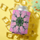 This artwork features a central, symmetrical, medallion-like design, incorporating floral and geometric elements that radiate outwards. The composition is balanced and visually engaging, drawing the eye to the intricate pattern. The background is a solid, bright pink, making the design pop.