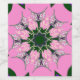 This artwork features a central, symmetrical, medallion-like design, incorporating floral and geometric elements that radiate outwards. The composition is balanced and visually engaging, drawing the eye to the intricate pattern. The background is a solid, bright pink, making the design pop.