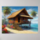 Beautiful Bamboo Hut In Tropical Island Beach Poster