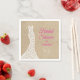 A romantic lace wedding dress, cute starfish and pretty pink type, accents this bridal shower napkin on an illustrated beach sand background. It coordinates perfectly with the Beautiful Beach Wedding Collection in Pink. If additional coordinating items are needed, just contact with us with your request at prettyfancyinvites@gmail.com.